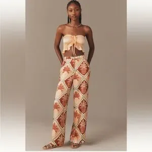 πHOST PICK πFARM Rio x Anthropologie Pink and Orange Pineapple Wide Leg Pants