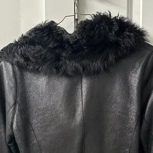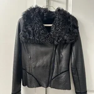 Soft, supple, fully lined genuine shearling with oversized fur collar.