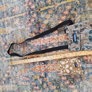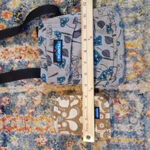 Used Kavu wallet and crossbody. The wallet is very spacious with lots of room for cards. The crossbody is compact for a lightweight option to grab on the go. Measurement in photos.