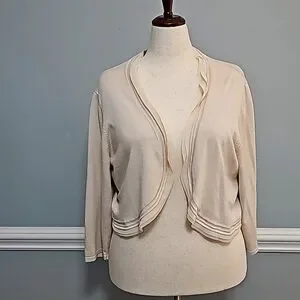 Cato Shrug With Organza Edge. Soft sweater material. Cream color. Size 22/24. New condition.