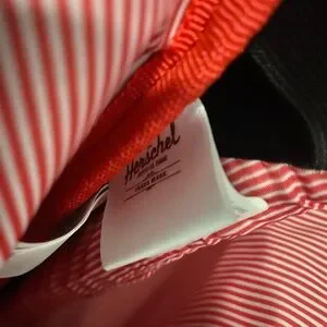 Inner backpack is red and white striped.