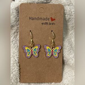 Butterfly handcrafted earrings on 925 hypo allergenic sterling silver gold tone hooks and backings