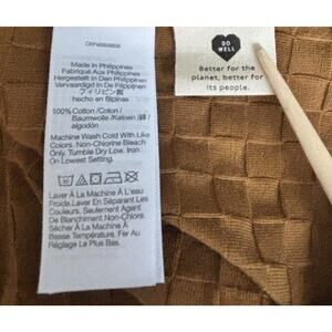 This is a Madewell V-Neck Brown Checkerboard Jacquard Cardigan in size small. The cardigan features a retro style with a V-neck neckline and a checkerboard jacquard pattern in brown. Made of 100% cotton, this sweater is designed for women's regular sizing and falls under the sweater category in women's clothing. Perfect for adding a stylish and cozy layer to your outfit with a touch of vintage charm.