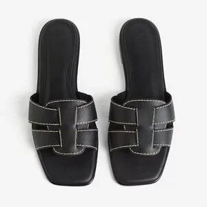 Sandals with square toes and a wide foot strap with contrasting stitching.