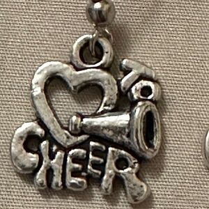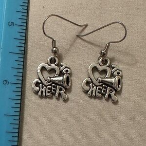 Hand made – NWOT – cheerleader earrings with heart and megaphone says heart to cheer! On Silver tone hook.