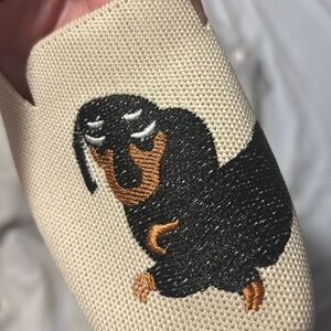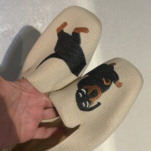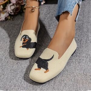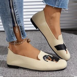 LAST PAIR Dachshund Wiener Doxie Dog Breed Embroidered Light tan or cream Woven Comfy Loafers Slip On Flats Shoes Sz 40/ or US 8 Womens .