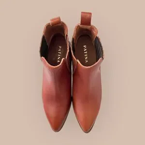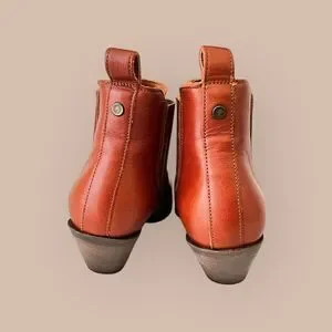 Keywords: chelsea boots, ankle boots, western boots, leather boots, pointed toe boots, stacked heel, cognac boots, brown boots, slip on boots, womens boots