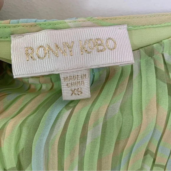 Ronny Kobo Roberta Pleated Shift Midi Dress Sage Green Size XS NWT