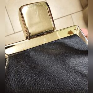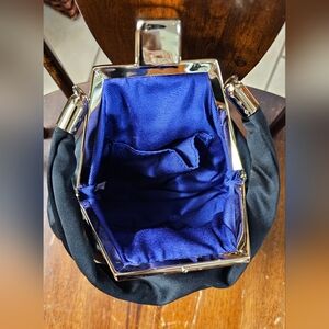 Gorgeous Black Satin Evening Handbag with Goldtone Turnlock closure EUC