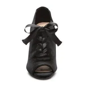 Kelly & Katie Black Velvet Peep Toe Booties w/Satin Ribbon Laces.