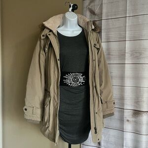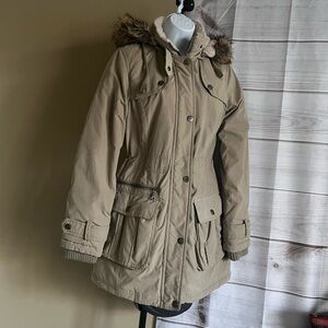 DKNY Beige Light Brown Parka Winter Coat