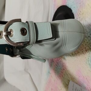 Authentic Vintage Y2K Coach Light Blue Pebbled Leather Shoulder Bag! Silver hardware, zipper closure and zipper pocket inside! Has original hangtag! Has some light marks on one side I'm unsure of what it is.