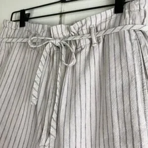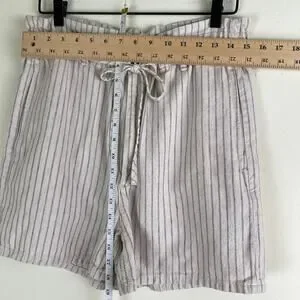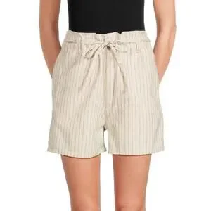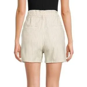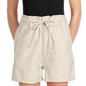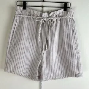 rag & bone Striped Shorts Size 30 Ivory Cream Linen Blend Paperbag High Waist