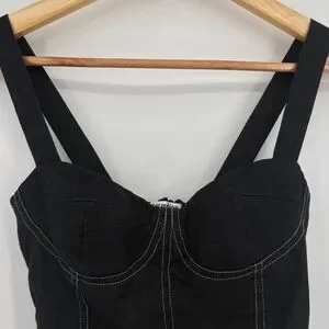 Reformation Libra Bustier Linen Top, Sz 0, Black White Sexy Reputation Edgy