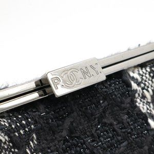 CHANEL Paris New York Line Tweed Chain Vanity Bag Black White