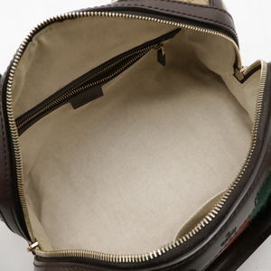 GUCCI GG Canvas Sherry Line Handbag Boston Shoulder Bag Leather Beige Dark Brown