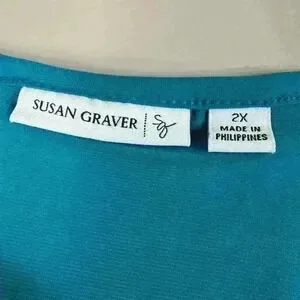Susan Graver Liquid Knit Ruched Sleeve Tunic Teal Women’s 2X