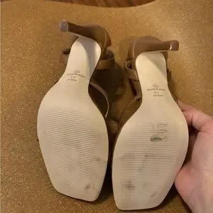 Brown leather heeled thong sandals 7.5