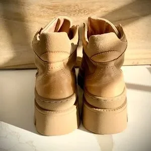 $268 Free People Dawn Hiker Tan Suede Leather Lug Sole Boots size 38 (8).