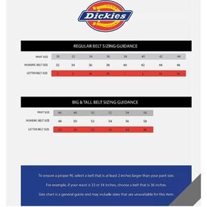 * Dickies logo under the keeper. 7 Notches (hole) provide a better fitd in Tab area
