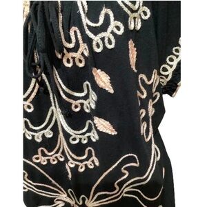 Lauren Michelle Off-Shoulder boho Top,Festival Vintage Black/Gold, women’s XL