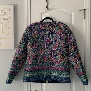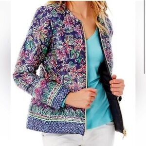 💙 LILLY PULITZER 2-in-1 NAVY PINK REVERSIBLE PUFFER JACKET down father XL Floral