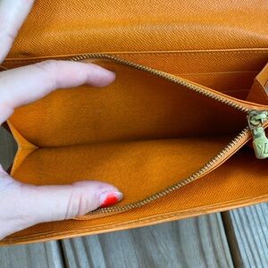 Louis Vuitton Sarah Epi leather long wallet mini crossbody orange gold