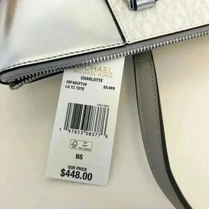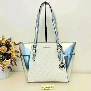 Michael Kors Charlotte Top Zip Tote shoulder bag silver