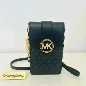 Michael Kors Purse Carmen Phone Crossbody Bag Black Signature