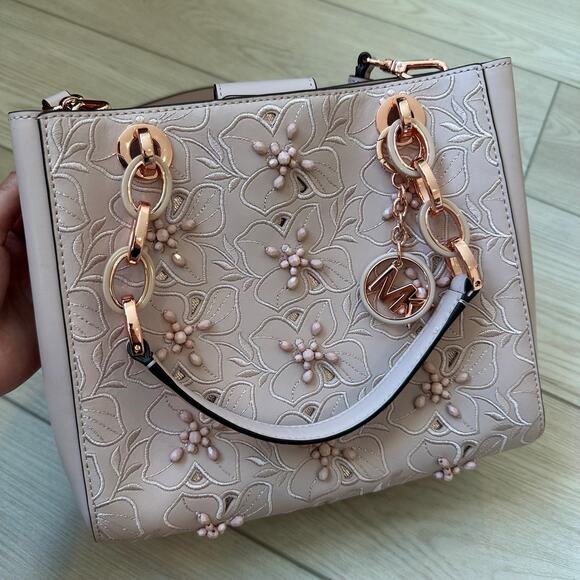 NWOT Michael Kors Sofia ballet pink beaded floral embroidered small tote bag