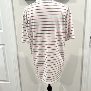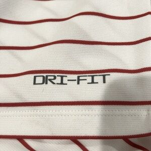 Roll Tide! On-field Alabama striped polo that features a two button placket, team logo embroidered on left chest, and Nike logo embroidered on right. Dri-fit for comfort whether you are on the golf course, at the game, or tailgating.