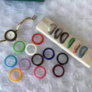 It will comes as shown consist of 18 plastic bezels and 6 of them are rare set plastic marble bezels.