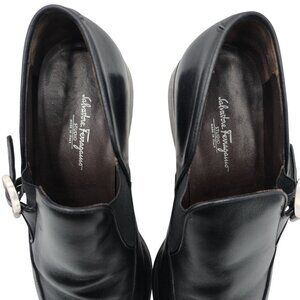 Vintage Ferragamo Italy Monk Strap Loafers Men's 8.5D Black Leather Dress Shoes
