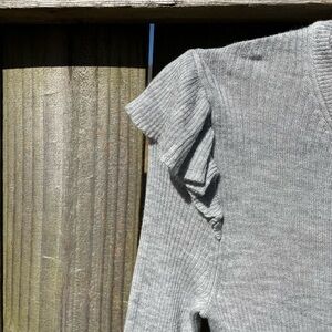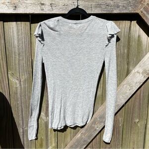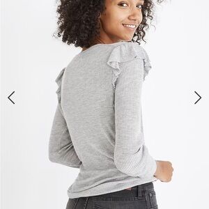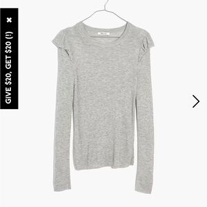 Madewell Ruffle-Sleeve Ribbed Knit Pullover Lightweight Sweater in Grey