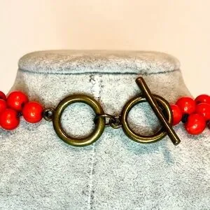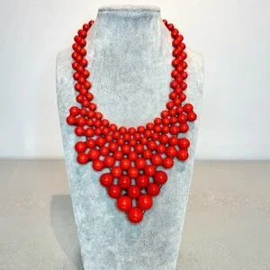Beaded Bib Necklace, Orange Acrylic with back Clasp 20”