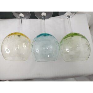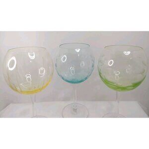 Set Of 3 Mikasa Cheers Pastel Large Balloon Wine Glasses Etched 9 1/2”