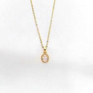 14K Gold Filled White Zircon Oval Pendant Necklace
