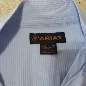 ariat light blue equestrian show shirt. Subtle stripe detail. size 34 is about a womens size 6. Great condition