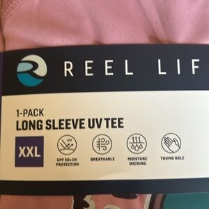 Reel Life Women's Long Sleeve UV T-Shirt Mauve with Abstract Print on Back Reel Life Logo on chest size XXL New with original packaging
