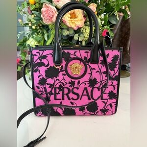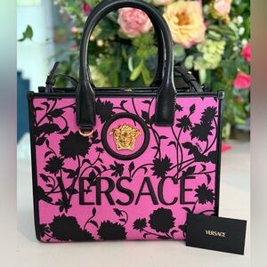 Versace La Medusa Tote Bag in Black & Pink with Crossbody Stap ~ EUC Gently Used