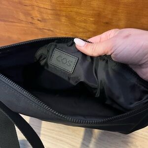 Modern and practical. This cross-body bag is made from a recycled technical fabric and it is designed to be worn across one shoulder.