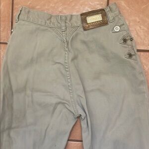 Vintage lawman's there is a few stains in them but still can be worn has the three buttons on them with the vintage pocket look.