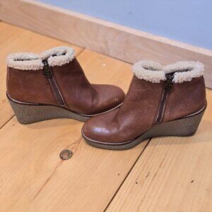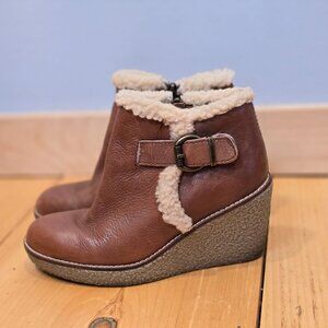 Sam Edelman Boots Womens 7 Brown Leather Ankle Bootie Wedge Heel