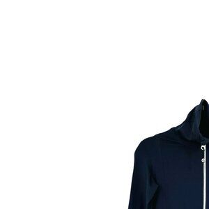 Lululemon Inkwell Daily Yoga High Neck Double Front Zipper Closure with Pull Long Sleeve Banded Cuffs Hem Thumbholes Two Front Zipper Pockets with Logo Pulls Chafe Resistant Flat Seam Detail Straight Hem Breathable Moisture Wicking Four Way Stretch Jacket Size 4 - Excellent condition.