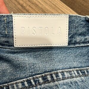 Pistola button fly raw edge denim jeans