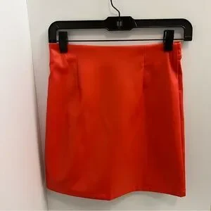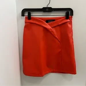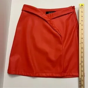 AKIRA Faux Leather Crossover Front Mini Skirt-Orange Red