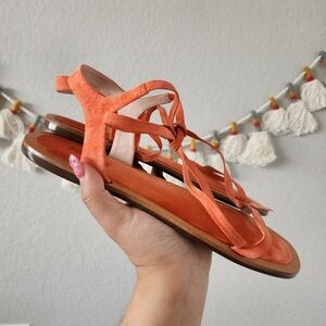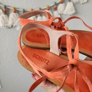 Schutz Orange Suede Wrap Around Ankle Flat Sandals Boho Chic Comfort Summer 10