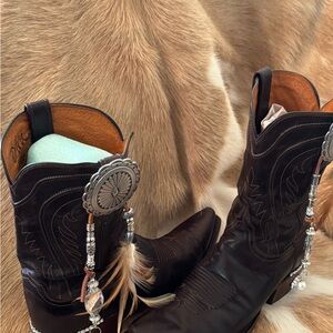 Beautiful reworked Lucchese Diva Vitalia, #41 of 120. These are special boots and were expensive new. I have added large Conchos, feathers, beads, leather and rhinestones to make this pair of boots “One of a kind”. They are in good shape and ready for a hardwood floor to dance the night away! I have more I will be posting! Please follow!