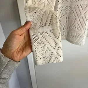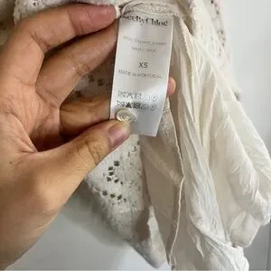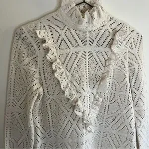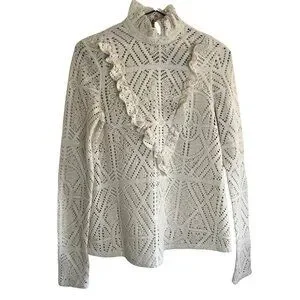 See by Chloe Cream Crochet Knit High Neck Victorian Style Long Sleeve Blouse
