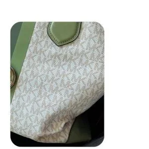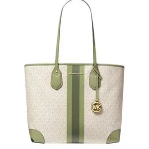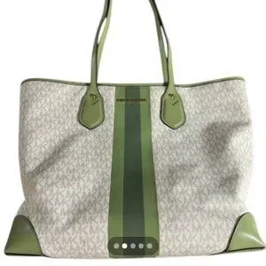 Michael Kors Eva Logo Extra Large Tote Bag Cream with Green stripes.
